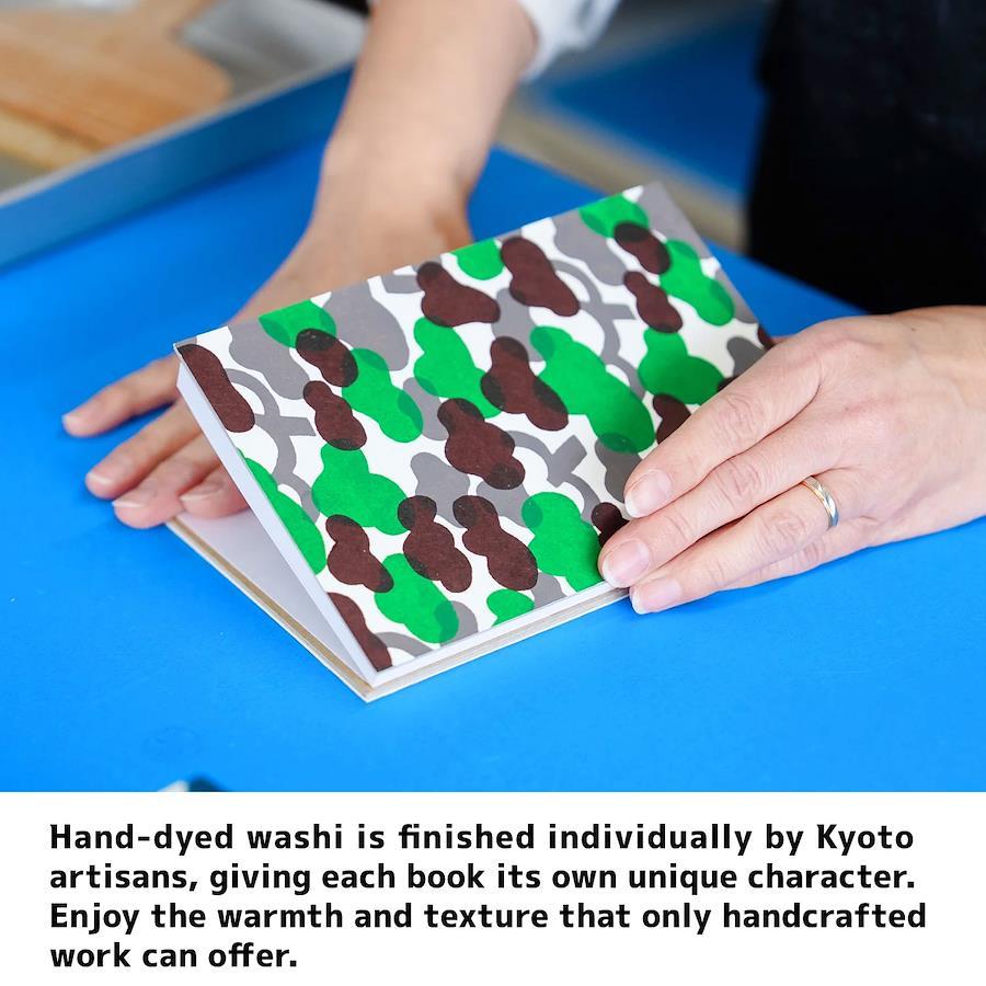 表紙: オリジナル手染め和紙 中紙: 奉書紙 ページ数: 蛇腹タイプ12山24丁 生産: 日本(京都) |