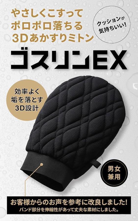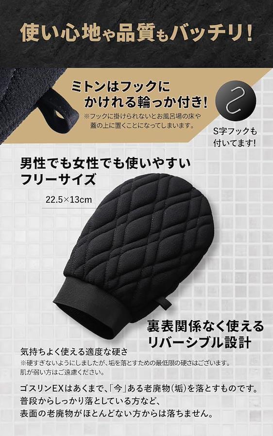 クッション入りのあかすりミトン「ゴスリンEX」。