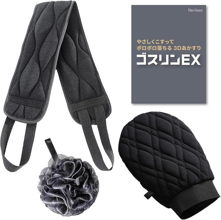 Goslin EX Plus Exfoliating Set, Includes Exfoliating Mitten, Back Exfoliating Towel, and Foaming Net, Korean-Style Exfoliating, Unisex