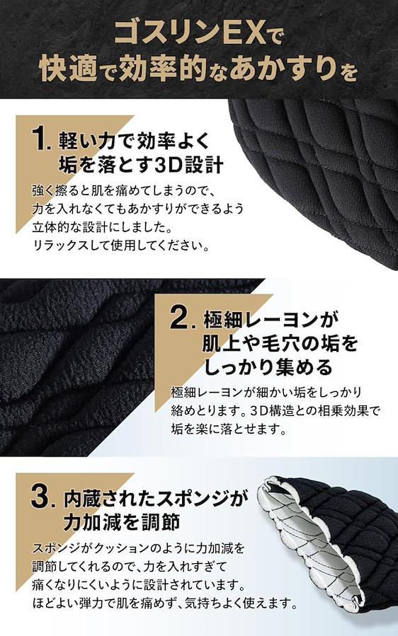 内部にスポンジを入れることで3D構造となり垢を落としやす苦なっています。