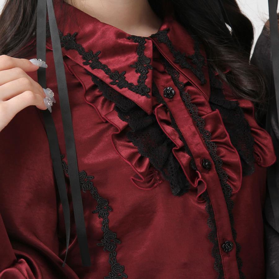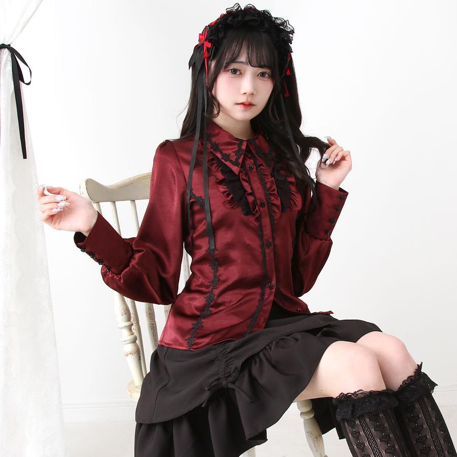 ヨーク部分にはたっぷりのレースフリルがあり、ゴシックスタイルに華やかさをプラス。