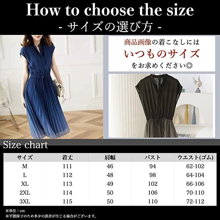 ・「サイズ(着丈/肩幅/バスト/ウエスト(ゴム)[cm])」M (111/46/94/62-102) L (112/48/98/64-104) XL (113/49/102/66-106) 2XL (114/50/106/70-110) 3XL (115/50/110/72-112) *平置き採寸のため若干の誤差が生じる場合がございます。