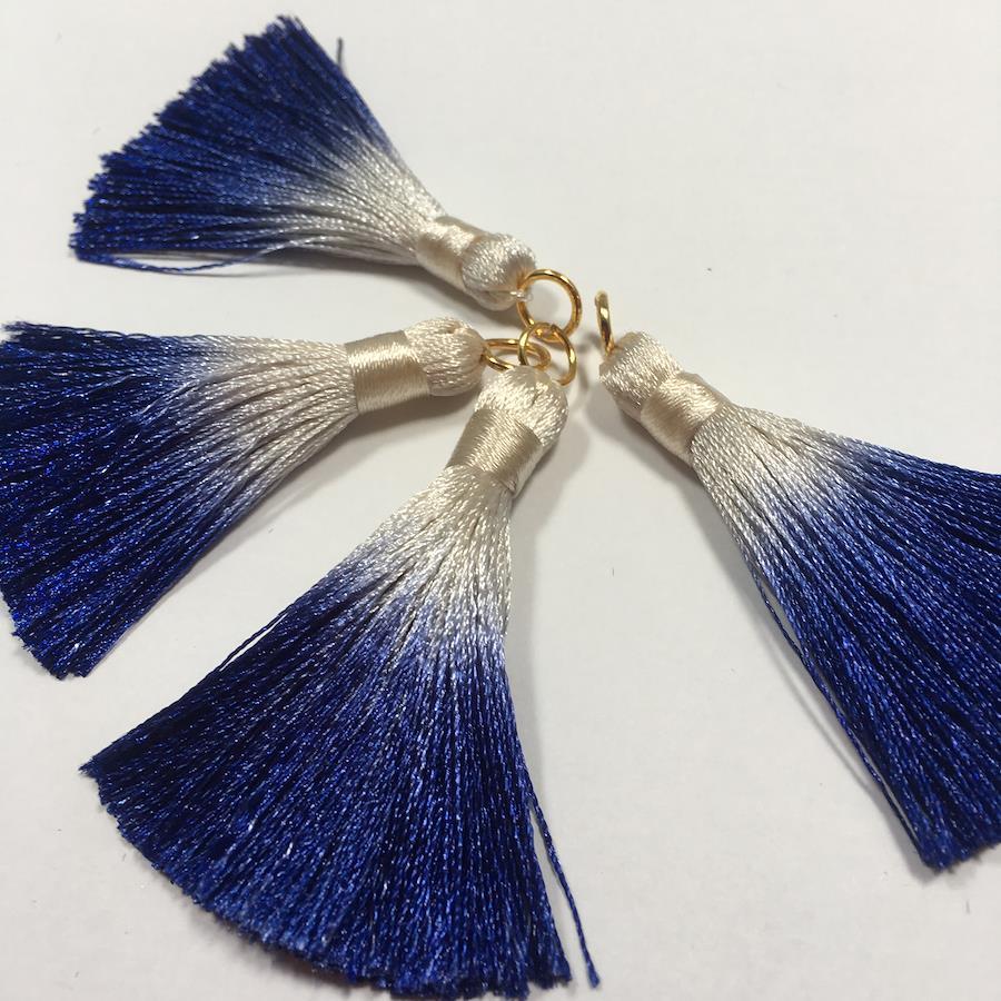 京都の職人が手作業でグラデーションに染色したタッセルです。チャームなどのパーツに使用できます。10個セット1個のサイズ:タテ約5cm/ヨコ約1.5cm素材:ナイロン(ポリアミド)