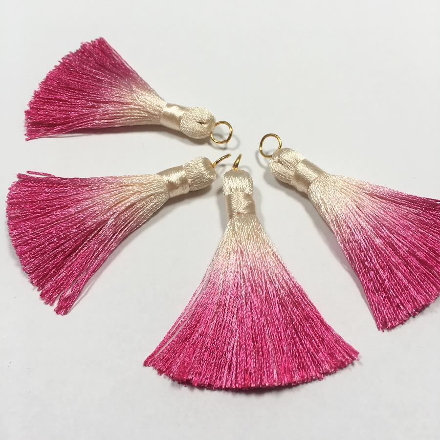 京都の職人が手作業でグラデーションに染色したタッセルです。チャームなどのパーツに使用できます。10個セット1個のサイズ:タテ約5cm/ヨコ約1.5cm素材:ナイロン(ポリアミド)