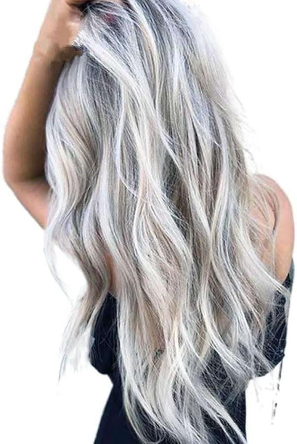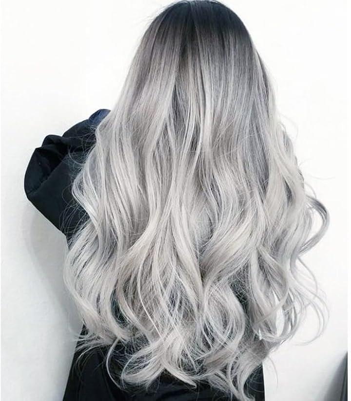 シルバーでクールなスタイル「グレーとシルバーのグラデーションロングウィッグは、クールで洗練された印象を与えます。