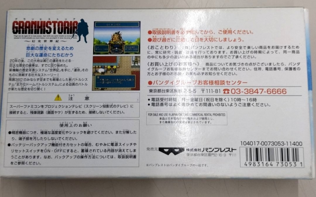 グランヒストリア SHVC-P-AIRJ(JPN) バンプレスト スーパーファミコンソフト バンプレストSHVC-P-AIRJ(JPN)グランヒストリア