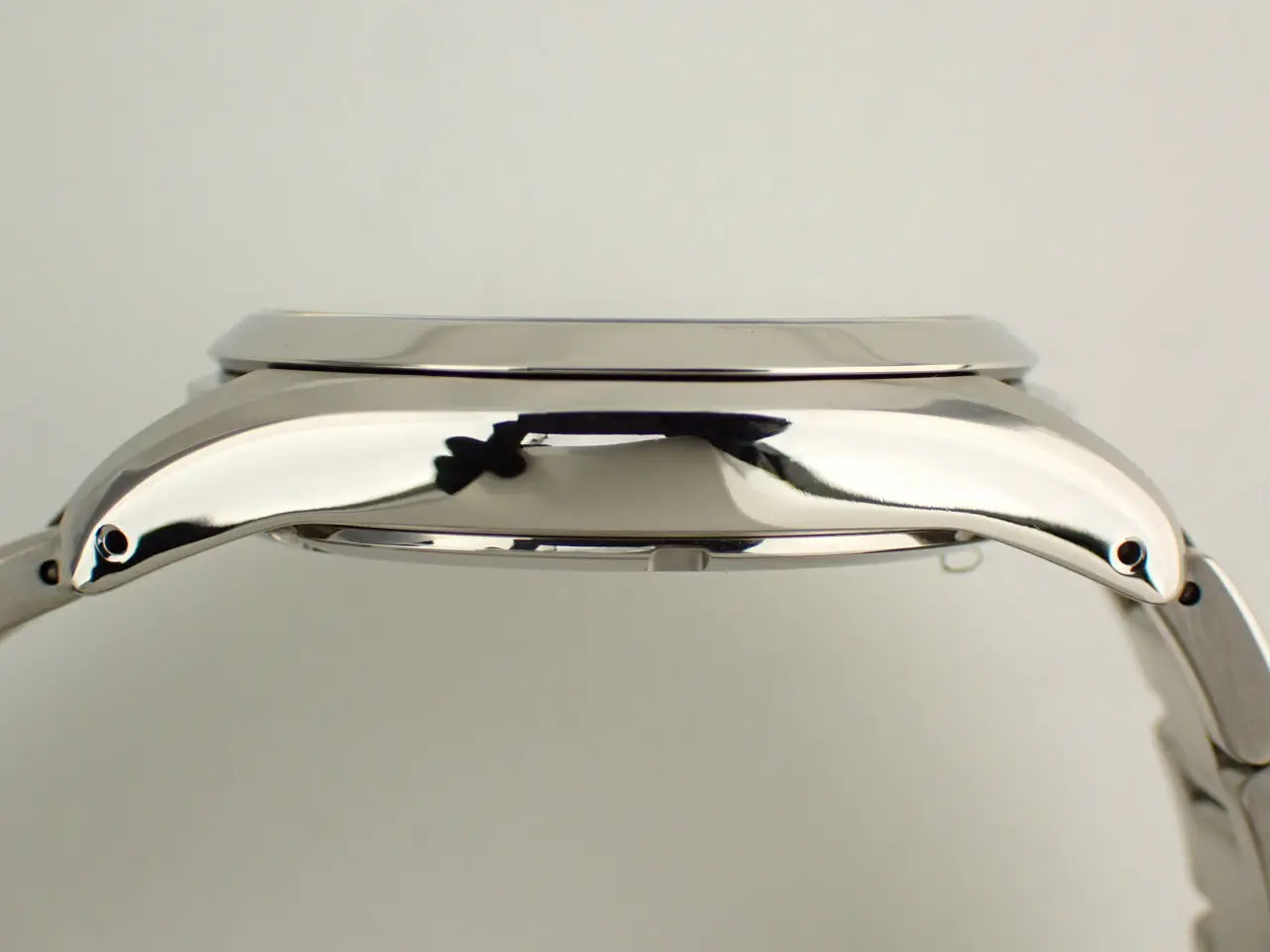 中古だが非常に綺麗な状態。時計本体やブレスのキズ等は光の角度により所々散見できる程度で、展示品・もしくは日常使用10回未満のような使用感がある状態。