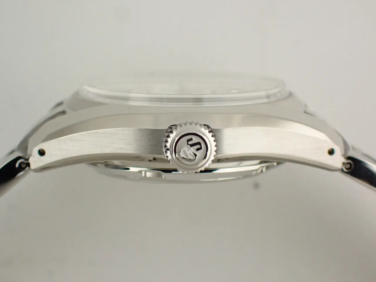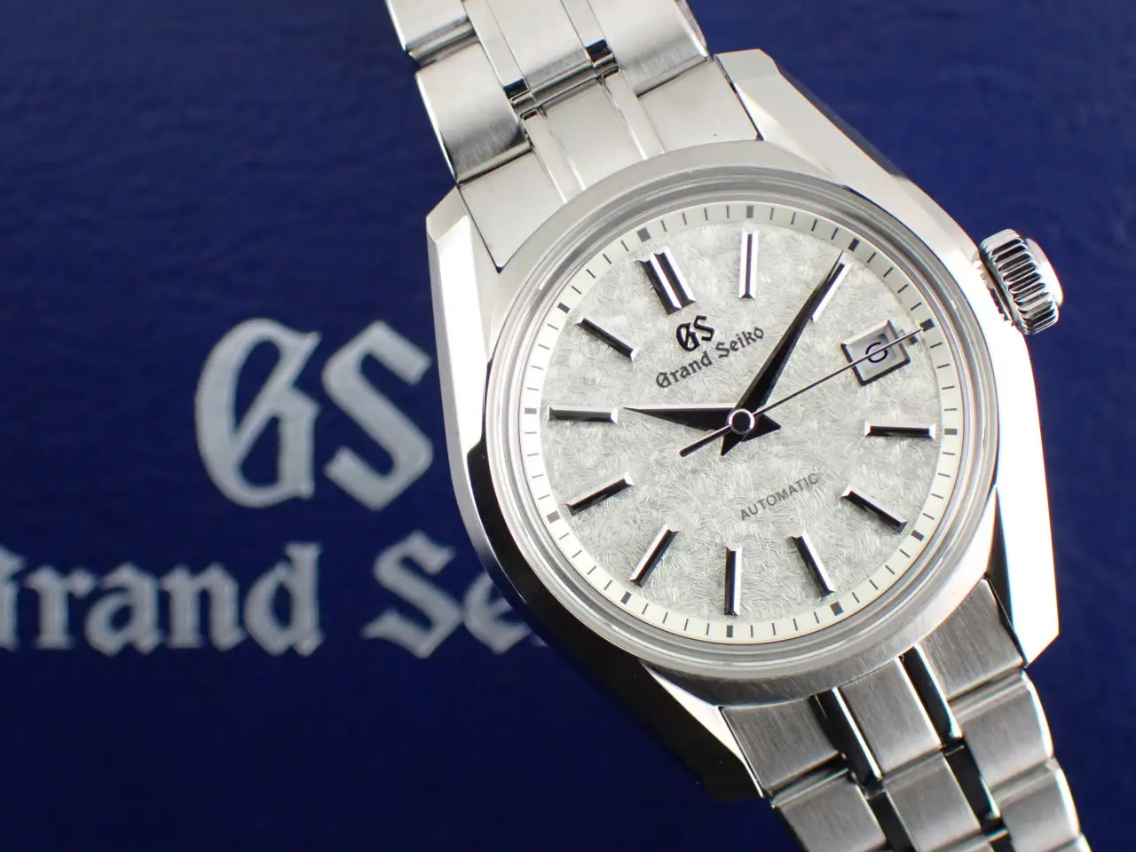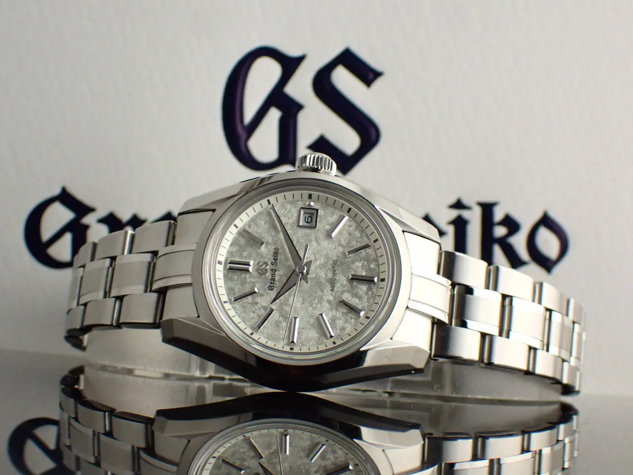 こちらの時計は、グランドセイコー初の自動巻メカニカル「62GS」を現代的解釈でアレンジしたレディースモデル。ベゼルの無い広々と見えるダイヤルと、「ザラツ研磨」による多面体ケースが特徴です。ダイヤルは「桜月夜」から着想を得てデザインされています。春先の朧げな月明かりに照らされる桜の情景を、繊細な型打ち模様とシルバーカラーのダイヤルで表現。