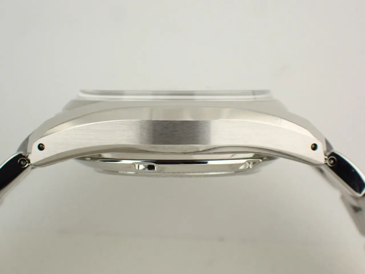 中古だが非常に綺麗な状態。時計本体やブレスのキズ等は光の角度により所々散見できる程度で、展示品・もしくは日常使用10回未満のような使用感がある状態。