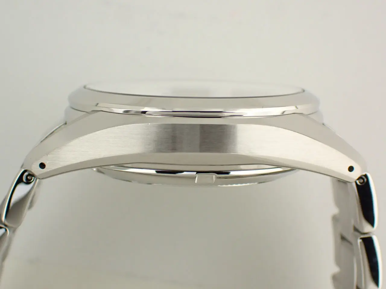 中古だが非常に綺麗な状態。時計本体やブレスのキズ等は光の角度により所々散見できる程度で、展示品・もしくは日常使用10回未満のような使用感がある状態。