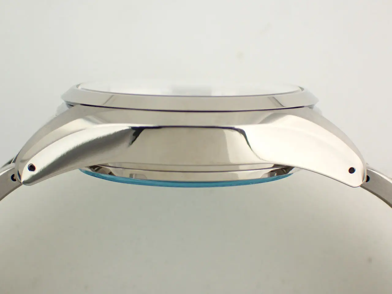 中古だが非常に綺麗な状態。時計本体やブレスのキズ等は光の角度により所々散見できる程度で、展示品・もしくは日常使用10回未満のような使用感がある状態。