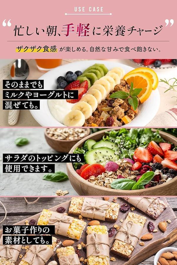 み、ドライフルーツ(パイン、レーズン、クランベリー、パパイヤ、マンゴー、グリーンレーズン)、ココナッツオイル、豆乳、てんさい糖、イヌリン、バニラビーンズ、ヒマラヤ岩塩