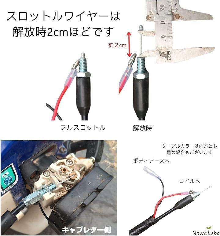 「操作性と取り回しを考慮した設計」 ハンドルと一体型のスロットルケーブル(約97cm)は、スムーズな取り回しが可能。