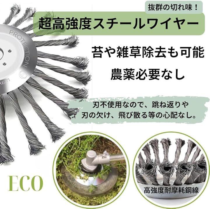 「簡単取り付け」草刈りブラシを芝刈り機のシャフトに簡単に接続でき、すぐに使用可能。