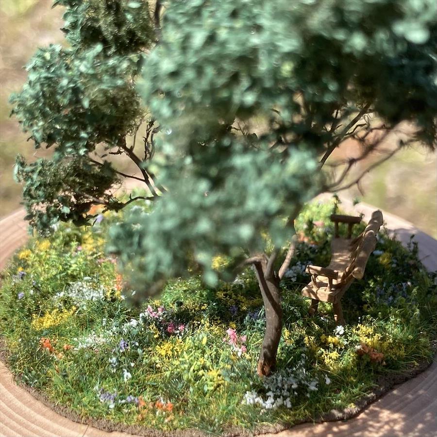 He uses his superior skills to create detailed parts precisely on his own. The elements that make up the scene have been skillfully selected and arranged, so that even though the work is small in size, it can be enjoyed by 360-degree viewers.
