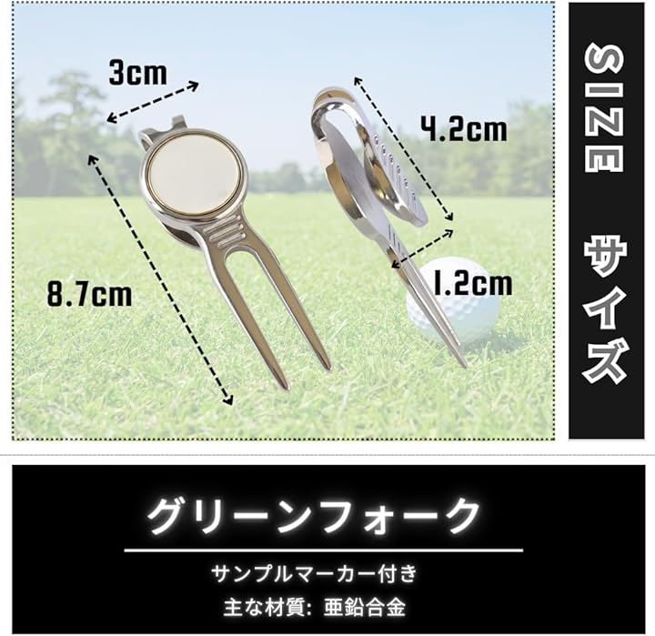 「商品内容」パッケージ内容:グリーンフォーク、サンプルマーカー 本体サイズ(約):全長8.7cm 幅3cm 重量40g 主な材質:亜鉛合金 *サイズ詳細は商品画像をご確認ください。