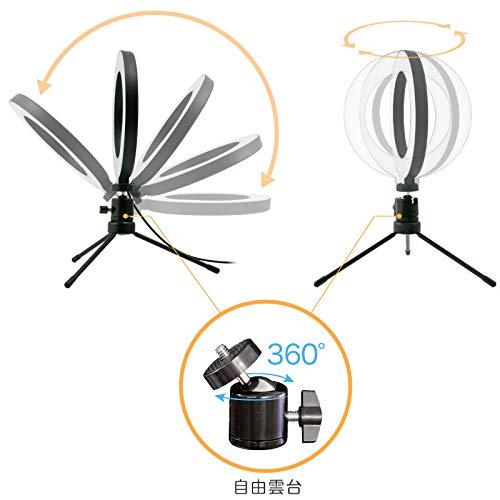 電源 DC 5V(USBポートより供給) br 消費電流 0.8A(最大) br LED灯数 48個 br 明るさ 白色:670lm、オレンジ色:640lm、同時:1100lm br 色温度 2700K~6500K br 演色性 Ra80 br ケーブル長 約190cm br 外形寸法 (全体)約 W220 × D220 × H278(mm) br (LEDライト)約 166 × H160 × D16mm br 重量 約310g(三脚を含む) br 動作温度範囲 0~50度 br 動作湿度範囲 10~70%(結露なきこと) br 保証期間 6ヶ月間 br 付属品 br LEDリングライト、三脚、取扱説明書/保証書