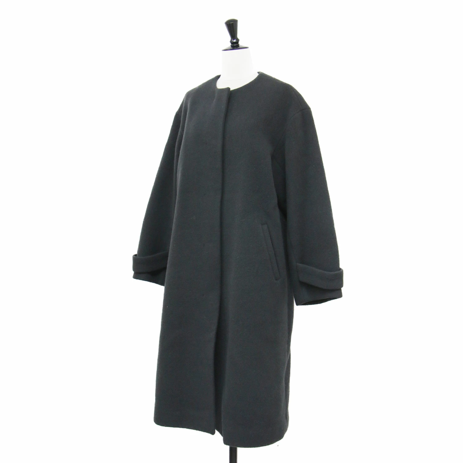 | 商品説明 | ◆SENTDALE WOOLのメルトン生地使用、ふくらみがあり、柔らかくしなやかなタッチ ◆襟元がすっきりと開いたノーカラーデザインで、顔周りをシャープで上品に見せ、タートルネックや巻物との相性も抜群 ◆通勤スタイルのアウターとしてはもちろん、デニムやカジュアルなニットと合わせて普段使いもできる、着回し力の高い一着 ・フロント比翼仕立て ・ポケットあり ・裏地あり ・バックスリットあり |