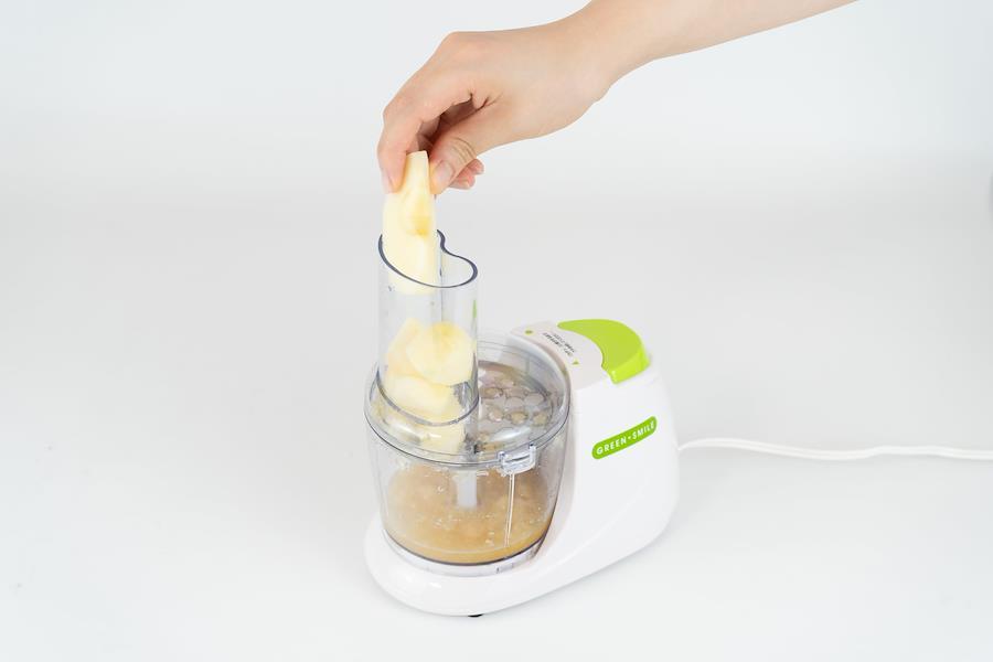 大根を早くおろすのに便利な電動タイプ皮をむいておろし器に入るサイズに切り分けて投入するだけでラクラク調理分解して水洗いができるので衛生的です離乳食のリンゴなどをおろすのにも使えます