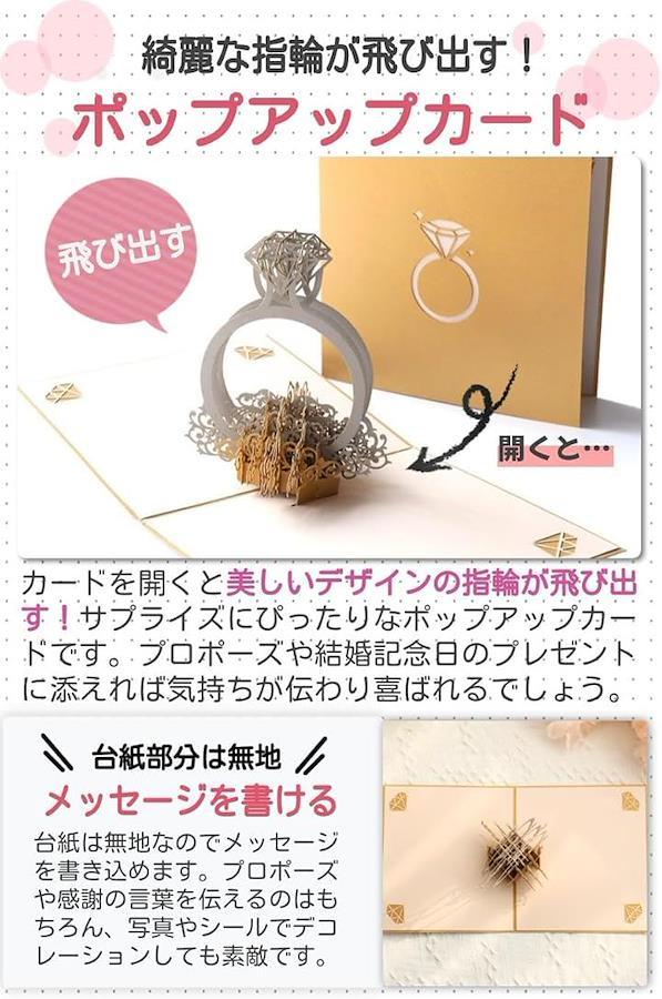 「ポップアップカード」カードを開くと美しいデザインの指輪が飛び出す。サプライズにぴったりなポップアップカードです。