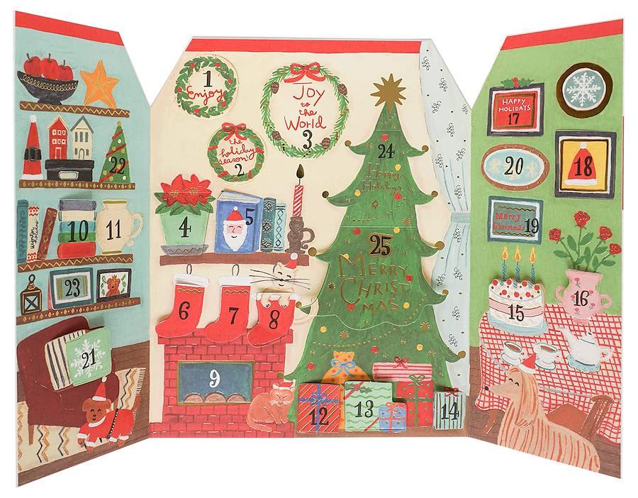 クリスマスまでのカウントダウンを楽しめるアドベントカレンダー。おうちの中に隠れた数字をめくると、楽しいイラストがあらわれます。立てて飾ることができ、インテリアアイテムとしてもおすすめです。