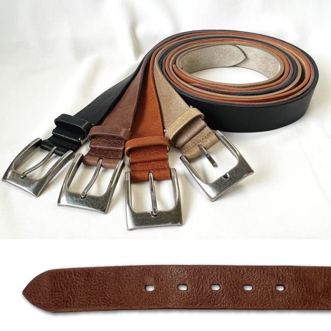 【サイズ】多少の誤差 ご了承下さいませ。ベルト長さ:約110cmベルト幅:3.5cmベルトバックル交換:不可ベルトウエスト調節:切取り可能ベルトウエスト目安:約90.5から約102cm■生産地:日本■素材・成分:レザー植物タンニンで丁寧になめされた革は、しなやかさと強さを兼ね備え、使うほどに味わい深い経年変化を楽しめます。シンプルながらも高級感のある仕上がりで、カジュアルからビジネスまで幅広く活躍。大人の装いにふさわしい、一本持っておきたいベルトです。