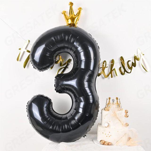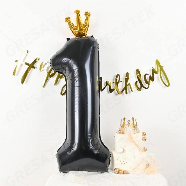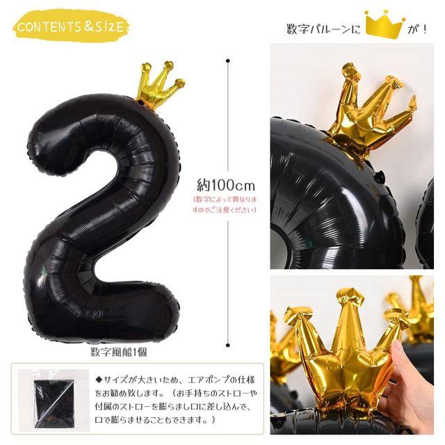 サイズ:2◆商品名:GRESATEKバルーン数字風船誕生日黒40インチ大きいナンバー2バースデーバルーン王冠付きクラウン飾り付け結婚式パーティー記念日ウェディングブラック