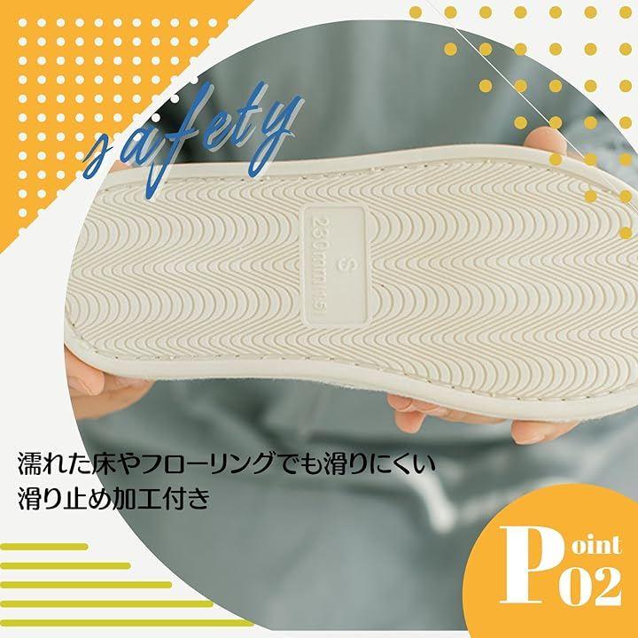 一般的なスリッパと異なり、かかとをすっぽり包み込むタイプのルームシューズなので、歩行時に脱げにくくストレスがありません。