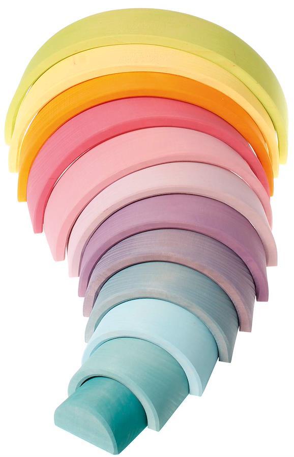 ■商品名グリムGRIMM'S 玩具 おもちゃ 知育玩具 積み木 12pcs インテリア 見立て遊び 虹 レインボー 高さ18×幅38×奥行7cm 虹色トンネル パステル 特大