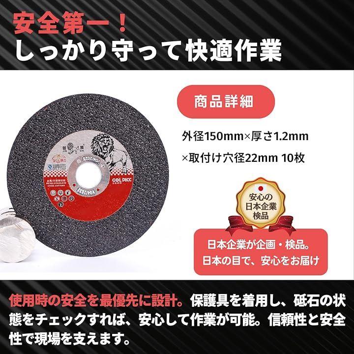 *外径x厚みx穴径(mm):150x1.2x22mm *入り数:10~50枚入 「注意事項」保護メガネ・マスクなど安全保護具を着用して正しく安全にご使用下さい。