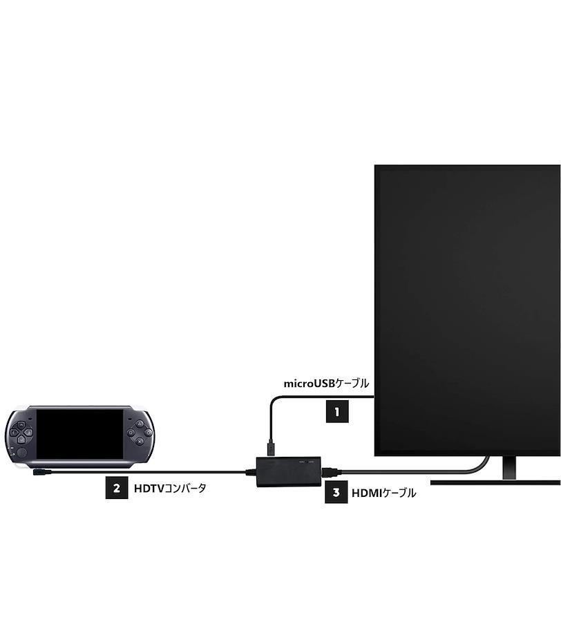 Simply connect the PSP3000 unit to an HDMI-enabled TV and transfer the game screen to a TV. The PSP2000 can display menu screens, images, and videos, but the game screen cannot be displayed. Thank you for your understanding. (If you want to use it stably, please power it with the included micro USB. ) Easy connect and easy TV output, making it convenient for playing retro games, and also for distribution Contents: PSP converter (cable length approx. 9.8 ft (3 m); HDMI cable (cable length 3.3 ft (1 m)) Micro USB cable for power supply (approx. 0.6 m) If the PSP battery is not enough, the image may be distorted. In that case, please check the charging of the device. Please remove various cables when not in use. As with original cables, it will not output to the full screen of the TV. (No ZOOM function) Please be aware of this before purchasing