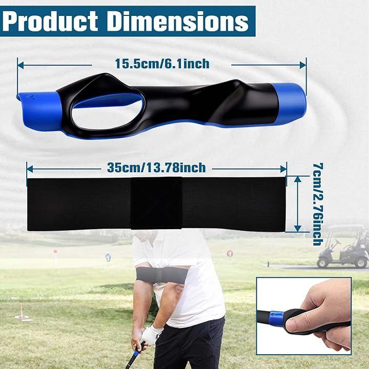 この2点組トレーニングシステムには、ゴルファーが正しい手のポジショニングを習得し、スイング全体で一貫したフォームを維持するのに役立つように設計されたスイング補正アームバンドとリストトレーナー補助具が含まれています。