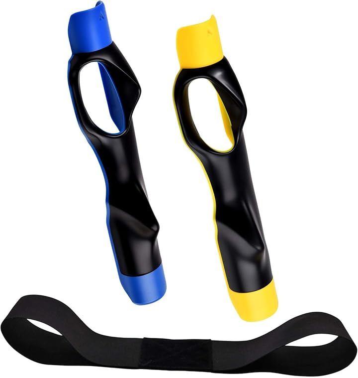 パッケージ内容: 2つのゴルフグリップトレーナー(青色と黄色)と1つの姿勢補正レジスタンスバンドが含まれています。