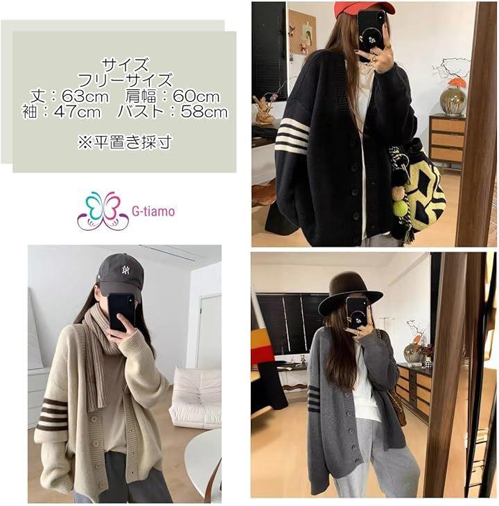 サイズはフリーサイズ、着丈:63cm、胸囲:~110cm、肩幅:60cm、袖丈:47cm、カラーはブラック、グレー、アイボリーをご用意しております。