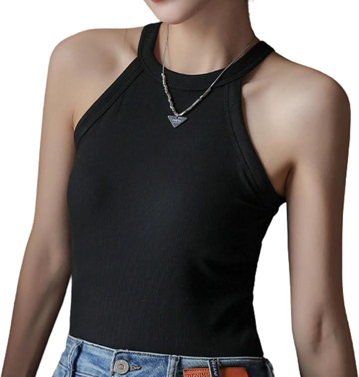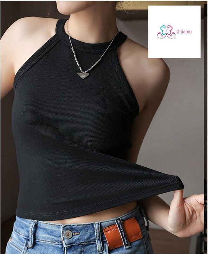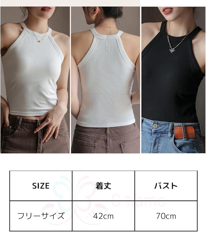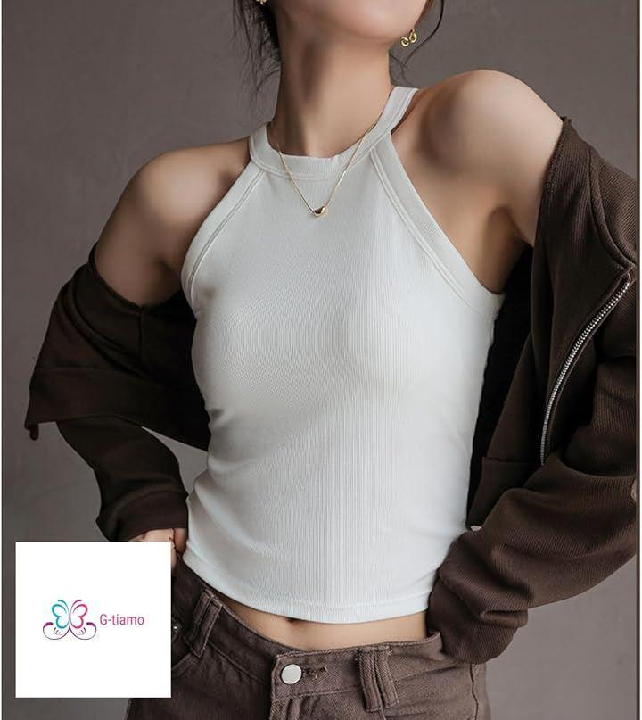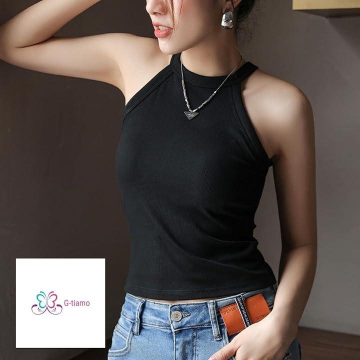 一枚でも、インナーとしても活躍するホルターネックデザインのタンクトップシャツ