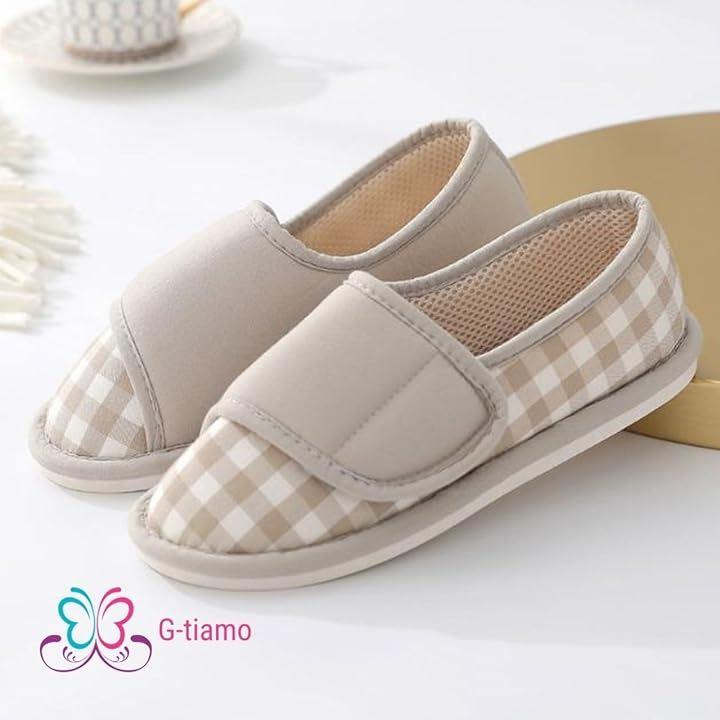 テープで着脱簡単なルームシューズ。