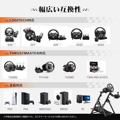 適応性: GTPLAYERのステアリングホイールスタンドは高さ、傾斜、位置を調整可能で、最適な位置を提供。ボタンでステアリングホイールとペダルプレートをエルゴノミックに調整。 安定性: ステアリングホイールスタンドは確実なベースを提供し、不安定なステアリングホイールを防ぎ、快適な配置で腕や手の疲労を軽減。コントロールスペースも提供。 簡単取り付け&収納: GTPLAYERステアリングホイールスタンドは取り付けが簡単で、必要に応じて簡単に折りたたんで収納できます。 互換性:ユニバーサルステアリングホイールスタンドはG25、GT27、G29、G920、G923....T300RS、TX F458、T500RS、T3PA-PRO(F1/GT)....など互換性があります。 リアルなドライビング体験:ステアリングホイールスタンドを使用することで、ステアリングホイールは実車と同じ位置と高さに配置されます。これにより、レースゲームやシミュレーションゲームの没入感が向上し、よりリアルなドライビング体験が実現します。
