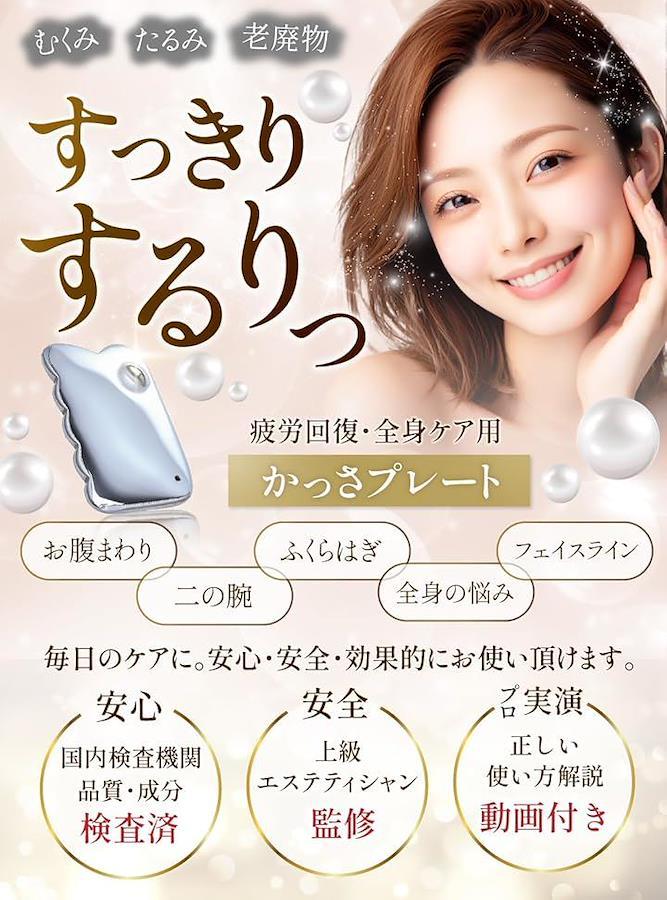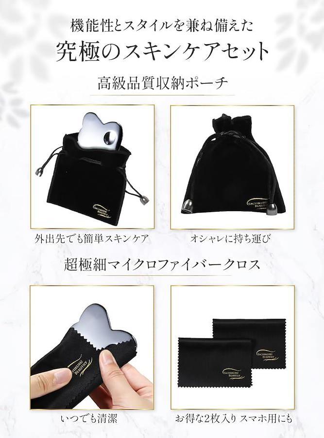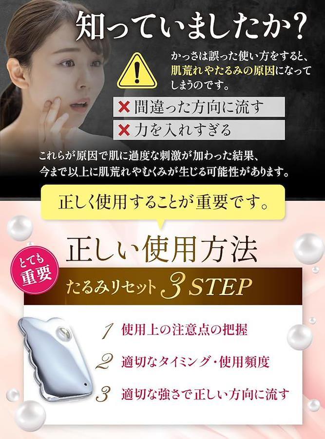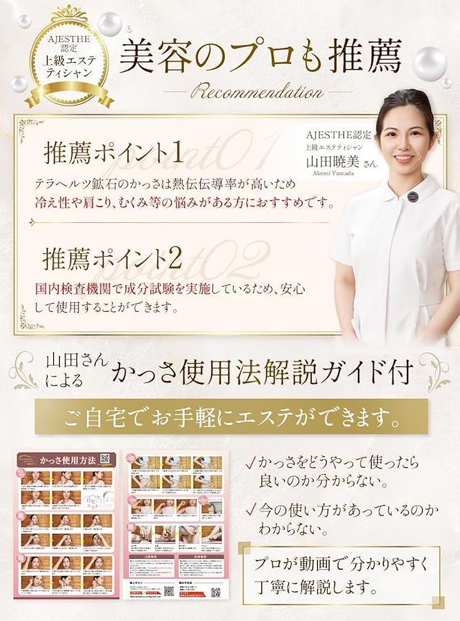 「オリジナル解説ガイド付き」デコルテや顔面、お腹周りなど、全身の各部位での正しいかっさの使い方を解説しています。
