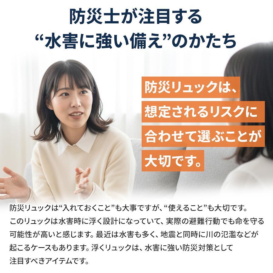 【水に浮く防災リュック】その防災リュック、”背負える”だけで満足していませんか?「釣りや川遊びの最中に災害が来たら?」「台風や豪雨で洪水の被害に遭ったら?」「避難の途中で水かさが急に増えたら?」そんな”もしも”の水害に備えるのが、背負ったまま水に浮く防災リュックです!