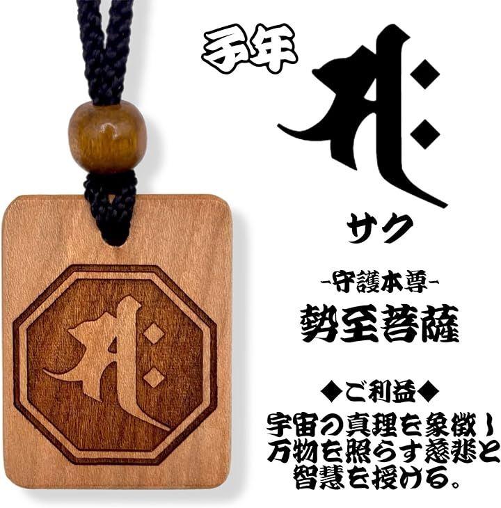 Guardian Sanskrit Wooden Amulet Necklace for Each Zodiac Sign, Made with Japanese Cherry Blossoms, Buddhist Temple Necklace, Hand-Finished by Artisans, Made in Japan