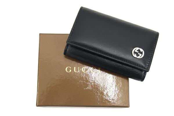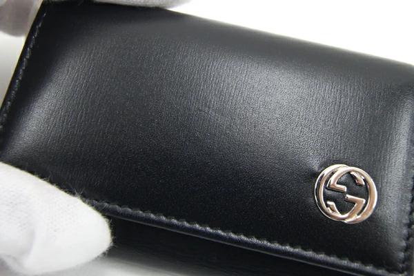 Gucci 6-Key Case with Interlocking G Design (115225) in Black Leather, Pre-Owned, Men's, Key Ring