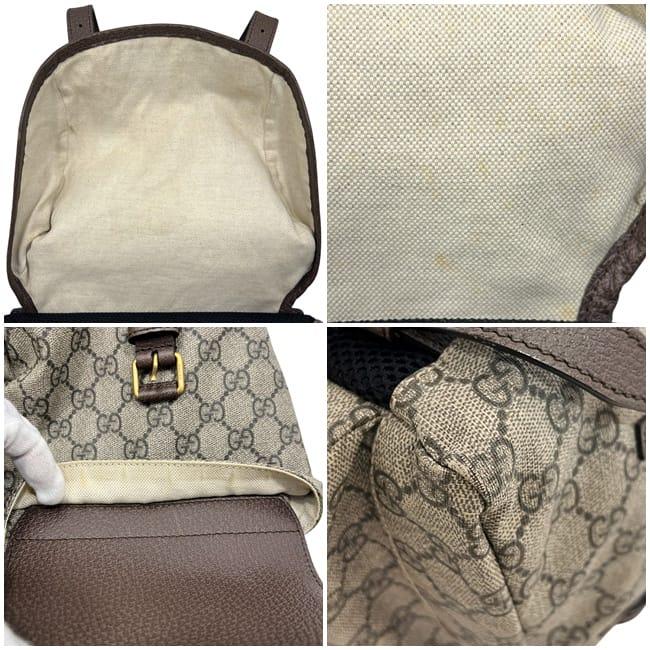 ☆---- 商品について ----☆グッチ バックパック ec-24860 ベージュ ブラウン GGスプリーム シェリー 460029 美品 リュック PVC レザー 中古 001998 GUCCI GG ロゴ 総柄 大容量 巾着 フラップ 旅行 軽い シェリーライン レディース メンズ 男女兼用 定番 人気 ブランド 本物 鑑定済み