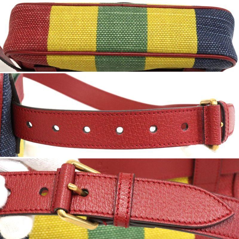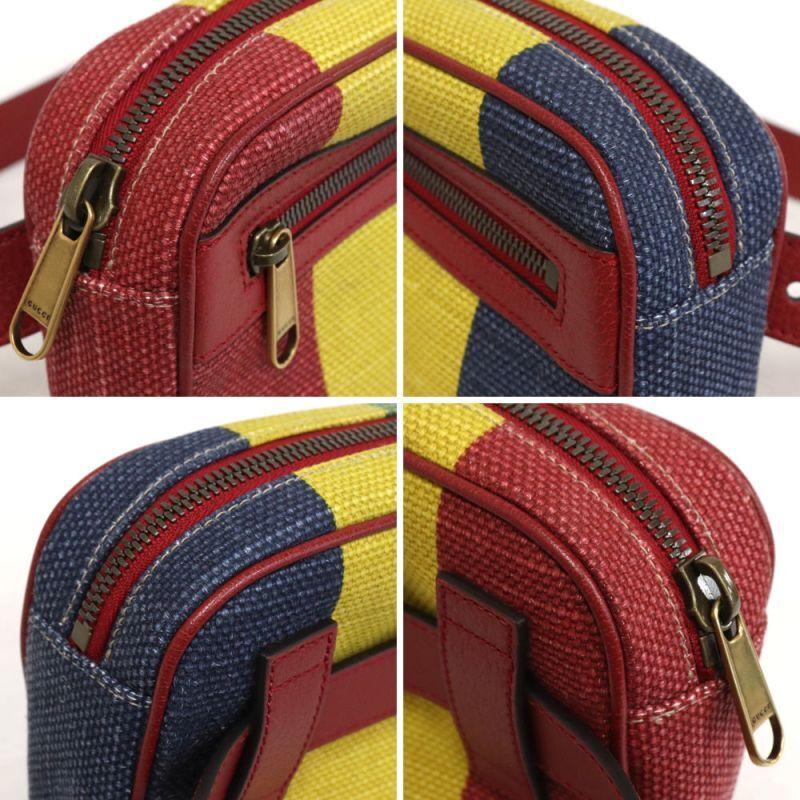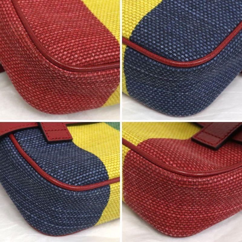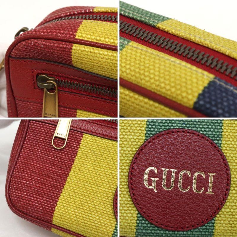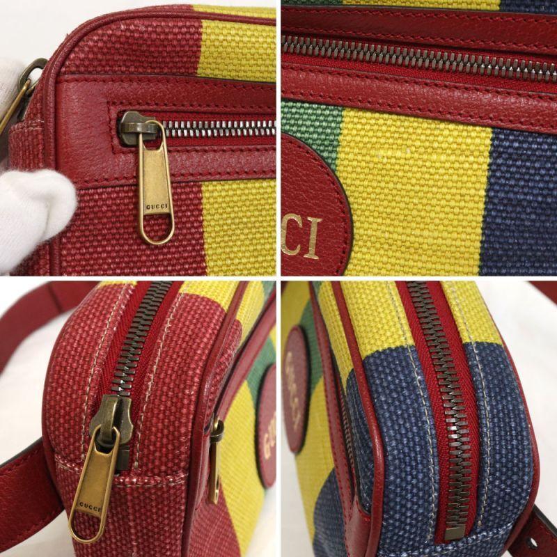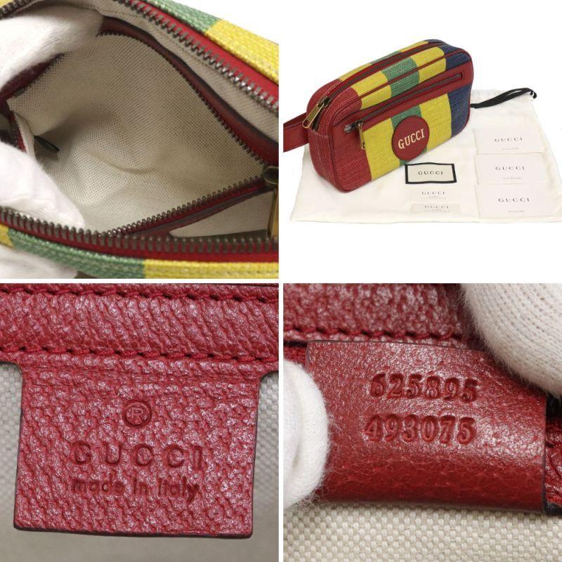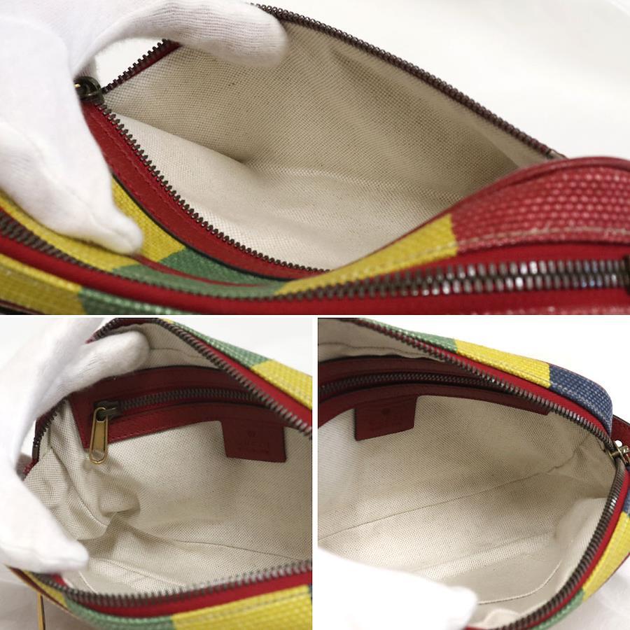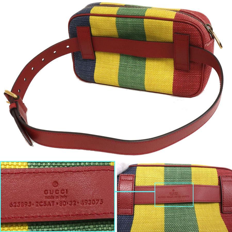 グッチのバイアデラストライプウエストバッグ(625895)の中古品です。カラフルでおしゃれなバッグです。表面に素材の毛羽立ちがみられます。ベルトに癖がついています。+---+---+---+---+---+。{状態}外側A内側A{素材}キャンバス/レザー{サイズ}約24cm x 14cm x 5.5cm。{その他}ファスナー式外ポケット1ファスナー式内ポケット1内ポケット1。{付属品}保存袋{お問合せ商品番号}24056012+---+---+---+---+---+。