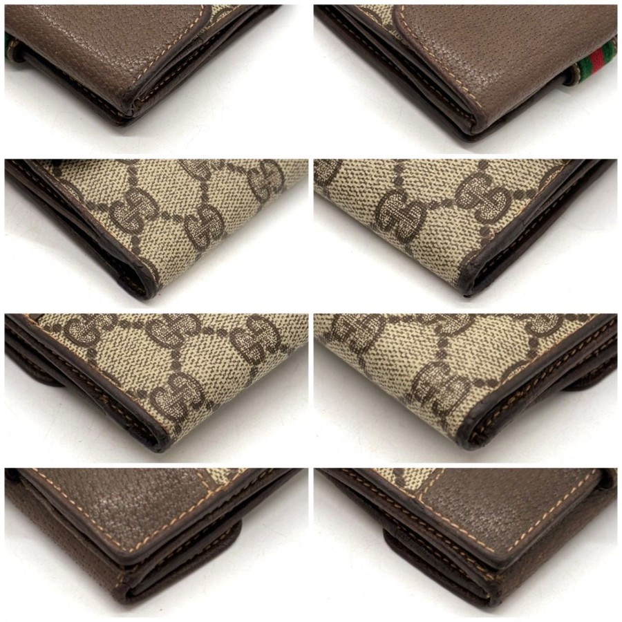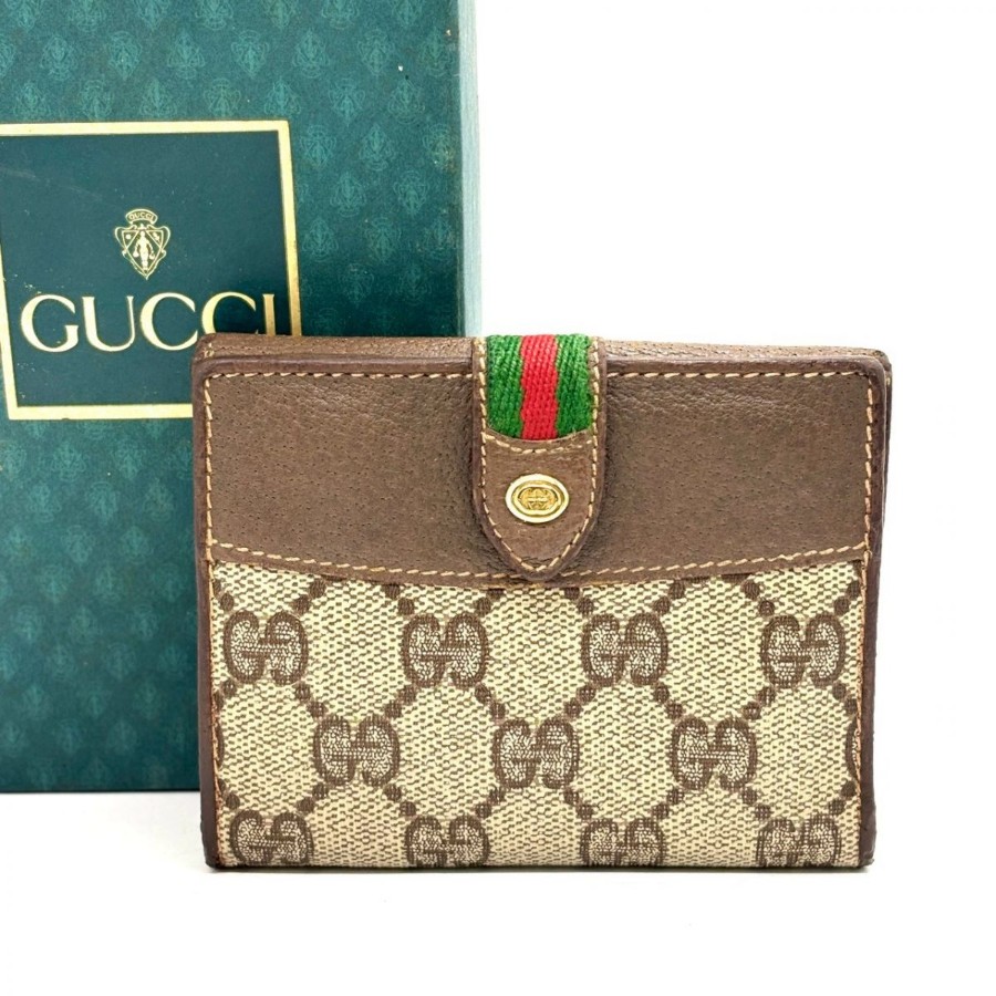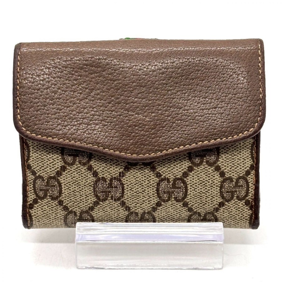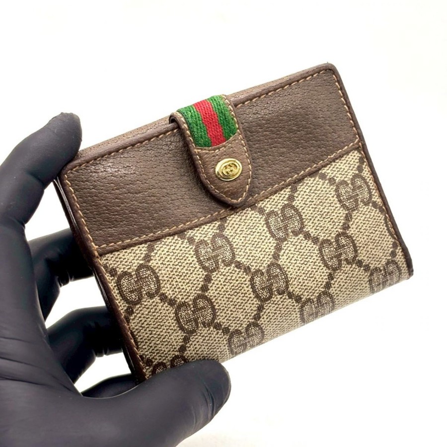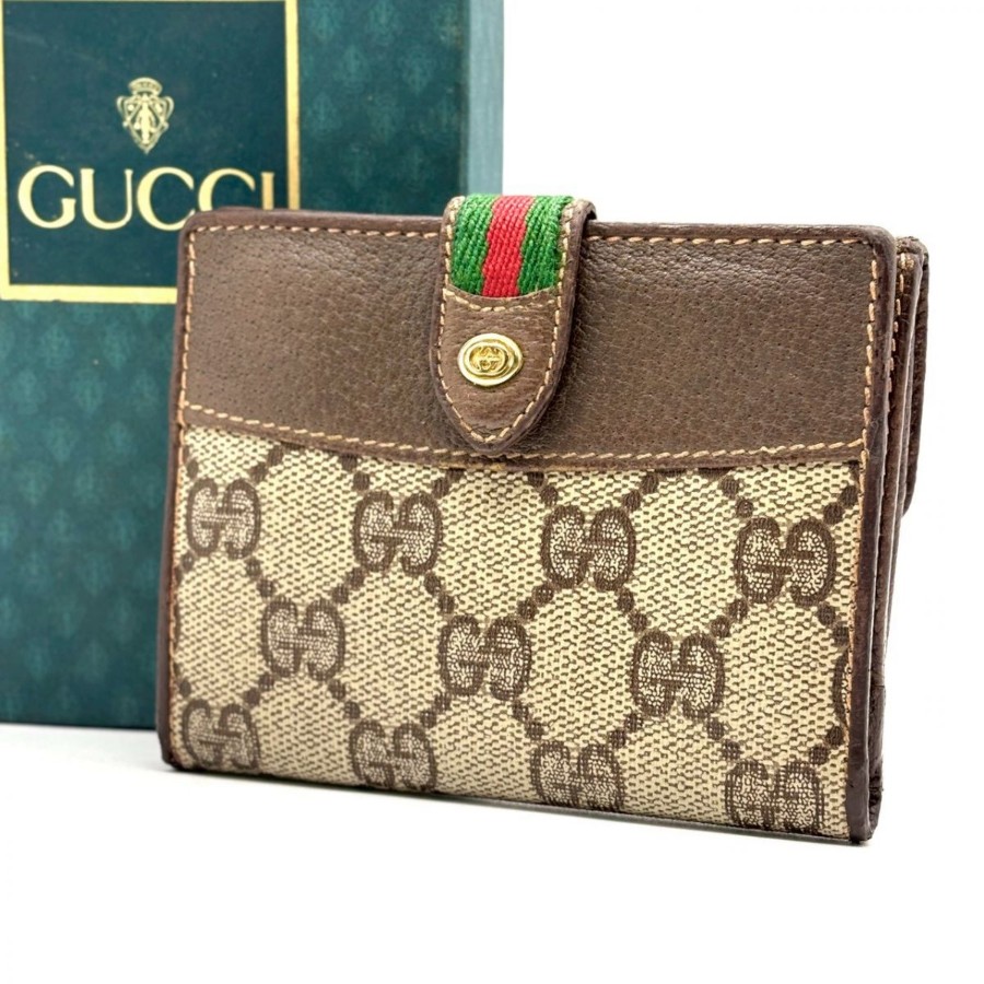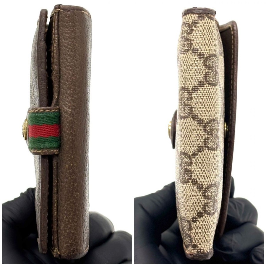 【商品説明】・GGスプリームにシェリーラインが映える、クラシックな佇まいの二つ折り財布。ミニバッグにも収まりやすく、Y2KやヴィンテージMIXの装いにも自然に馴染む一品です。