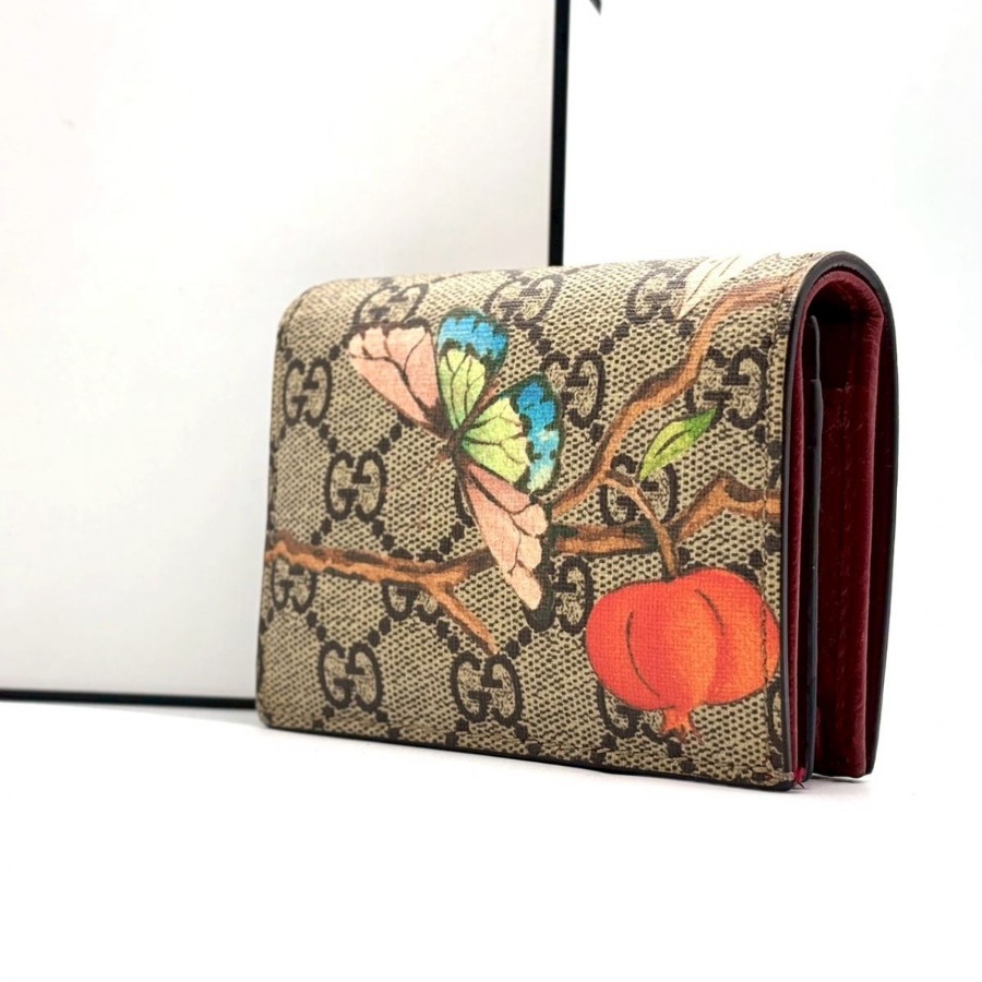 GUCCI Bi-fold Wallet GG Supreme Tian Butterfly Compact Wallet Beige