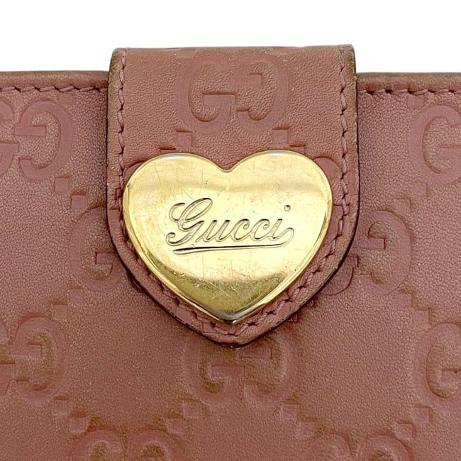 ☆---- 商品について ----☆グッチ 二つ折り 長財布 ec-24369 ピンク シマ 203550 財布 レザー 中古 2091 GUCCI ハート GG ロゴ ダブルホック レディース 女性 定番 人気 ヴィンテージ ゴールド金具 GG刻印 エンボスロゴ 総柄 シマライン ハート金具 ホック ブランド 本物 鑑定済み