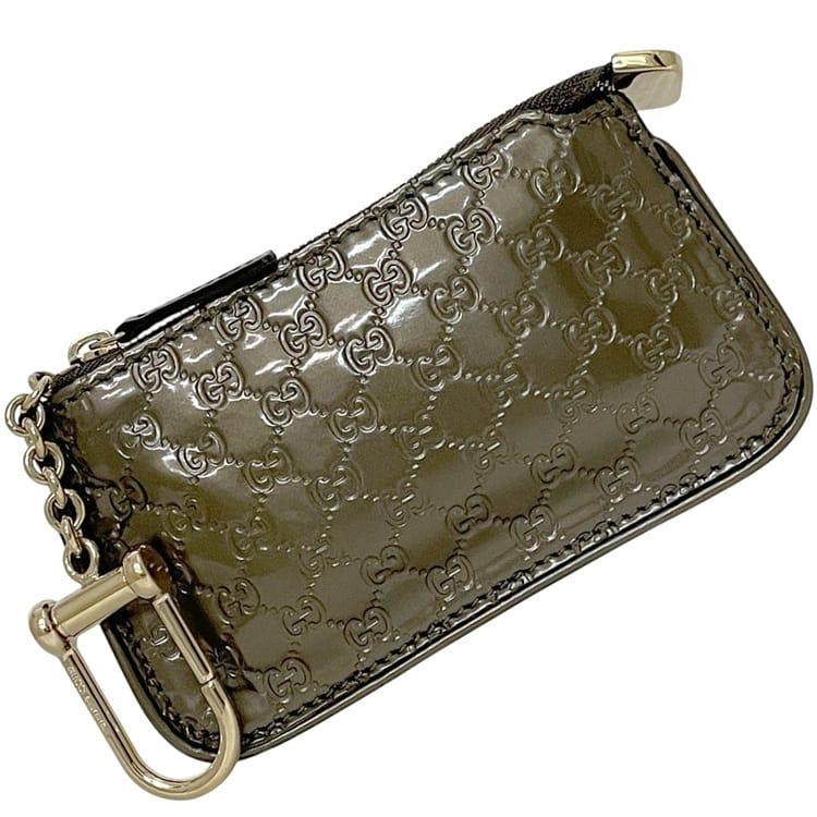 ☆---- 商品について ----☆グッチ キーリング付き コインケース ec-24674 カーキグリーン マイクロシマ 233183 美品 小銭入れ コーティングレザー 中古 002058 GUCCI GG 深緑 ファスナー 鍵 ホルダー ポーチ ミニ 財布 ロゴ ゴールド金具 人気 メンズ レディース ブランド 本物 鑑定済み
