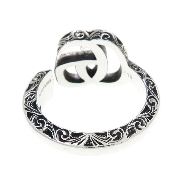 ■採寸#16 実寸:約15号 幅:0.2~1.0cm■素材Ag925■コメントグッチからダブルGアラベスクリングが入荷しました。グッチ定番人気のダブルGにアラベスクデザインがオシャレなリングです☆状態はシルバー特有のやや黒ズミ、リング内側に肉眼では分からない細かいスレ・小キズがある程度なのでAランクでのご紹介となりました。目立つダメージや汚れはなく、まだまだ綺麗にご使用頂けます。※リングは日本サイズ表記になります。