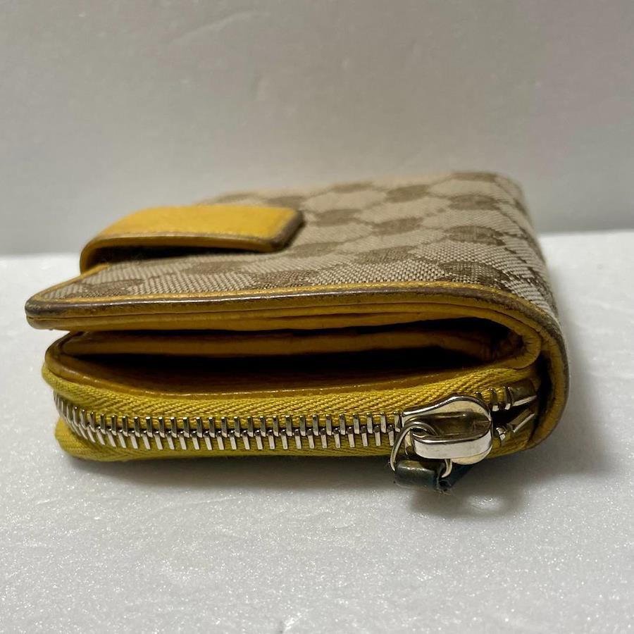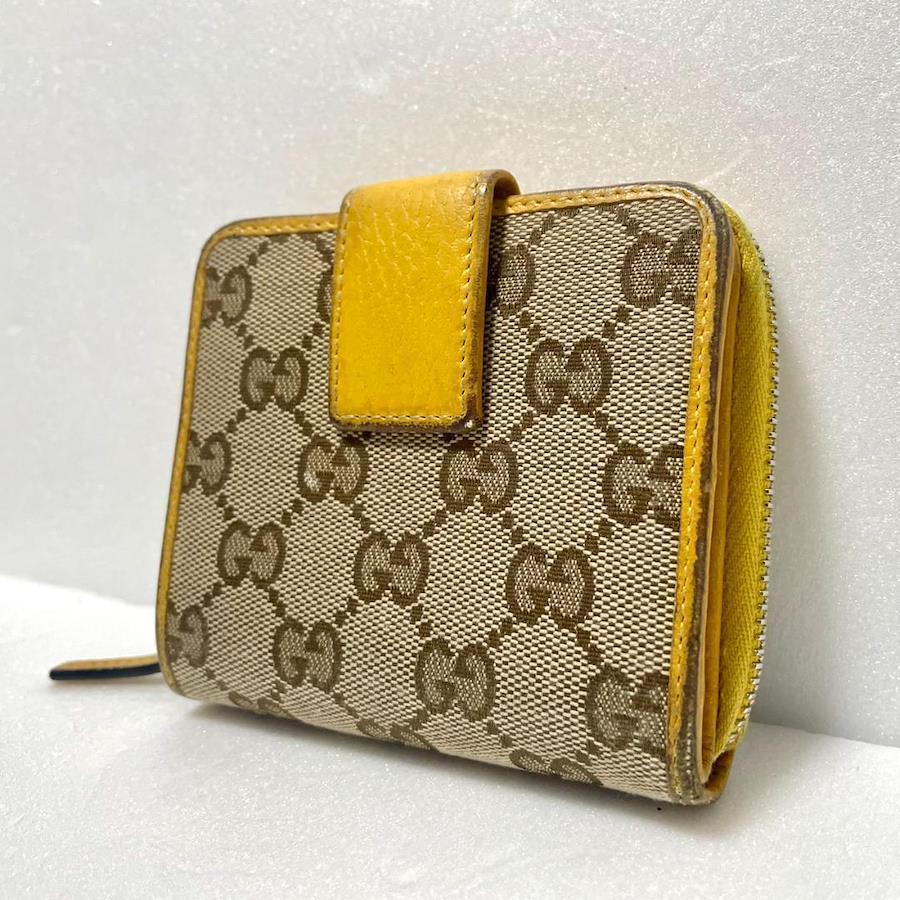 こちらは GUCCI グッチ GGキャンバス 二つ折り財布 イエロー レザー スナップ式 小銭入れ付き レディース ブランド になります。