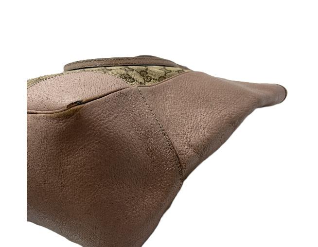 GUCCI(グッチ)の定番人気「GGキャンバス」を使用したトートバッグ。ブラウンレザーとのコンビが上品で、普段使いから通勤まで幅広く活躍します。大容量で収納力があり、実用性の高いデザインです。全体的に使用感がありますが、まだまだお使いいただけるヴィンテージアイテムです。